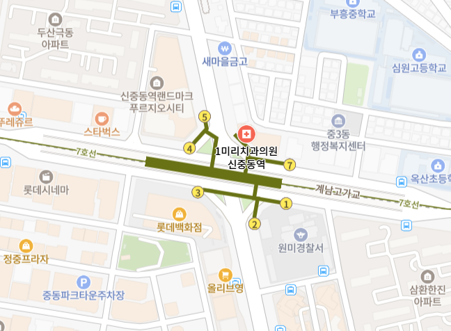 7호선 신중동역 6번 출구 바로 앞
